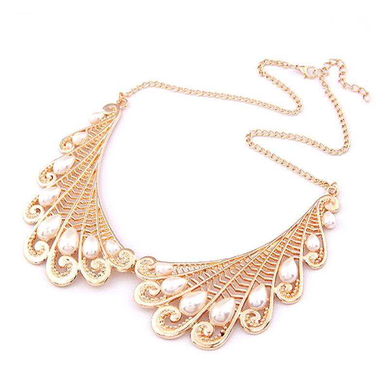 COLLAR LEANDRA TIPO BABERO PALETAS DE DIFERENTES TAMAÑOS Y PERLAS DORADAS GMART